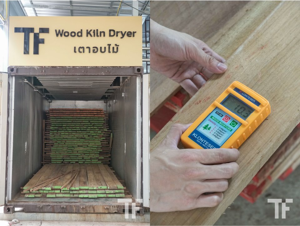 ไม้สักเมื่อตัดมา จะมีความชื้นสูงถึง 80%-100% ทำให้เนื้อไม้มีน้ำหนักเยอะและเกิดปัญหาการยืดหรือหดตัวของไม้ได้ เราจึงต้องลดความชื้นของไม้สักลง ซึ่งทำได้ 2 วิธี คือ