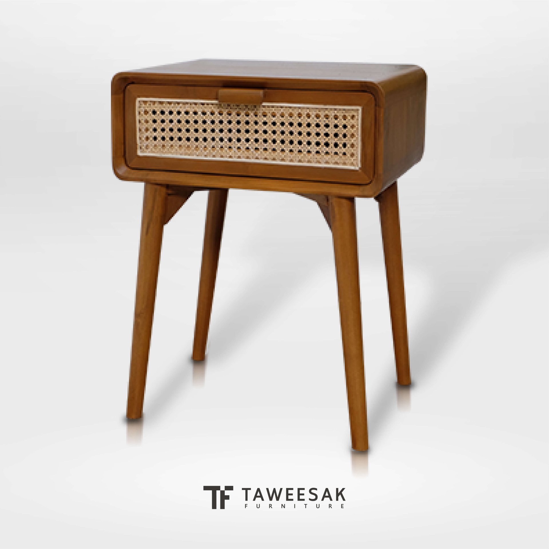 โต๊ะข้างเตียง ทำจากไม้สักแท้ผสมหวาย ดูเรียบง่ายและภูมิฐาน (ดูสินค้า)