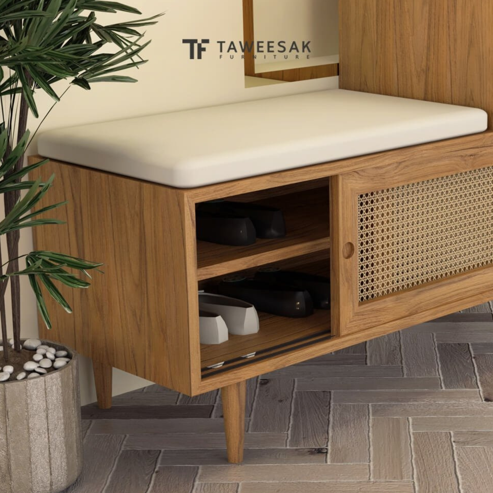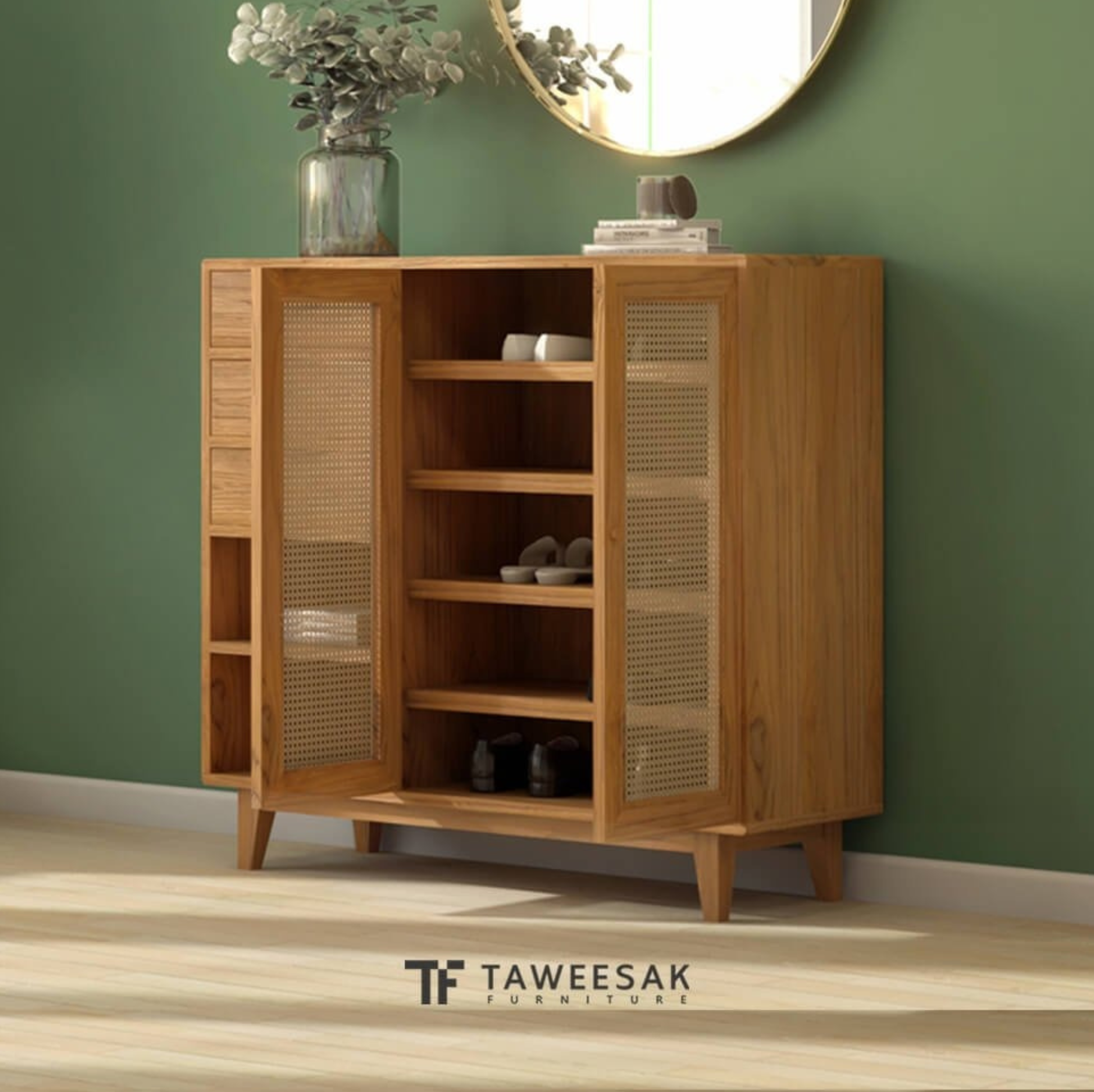 เมื่อได้รู้ถึงความสำคัญของตู้เก็บรองเท้ากันไปแล้ว รวมถึงวิธีการเลือกและวิธีจัดวางให้ตรงตามหลักฮวงจุ้ย น่าจะช่วยให้คุณมองหาตู้เก็บรองเท้าที่เหมาะกับบ้านคุณได้ง่ายยิ่งขึ้น หากยังไม่รู้ว่าจะเลือกอย่างไร เราขอแนะนำให้ Taweesak Furniture แบรนด์เฟอร์นิเจอร์ชั้นแนวหน้าของประเทศไทยที่ได้นำเอาไม้สักไทยเกรดพรีเมียมมาใช้รังสรรค์ตู้วางรองเท้าไม้สักที่มีชิ้นเดียวในโลกเท่านั้น ด้วยลายไม้อันเป็นเอกลักษณ์ ความแข็งแรงคงทน ที่มาพร้อมกับการดีไซน์อันล้ำสมัย มีให้เลือกทั้งสไตล์ญี่ปุ่น โมเดิร์น หรือมินิมอล