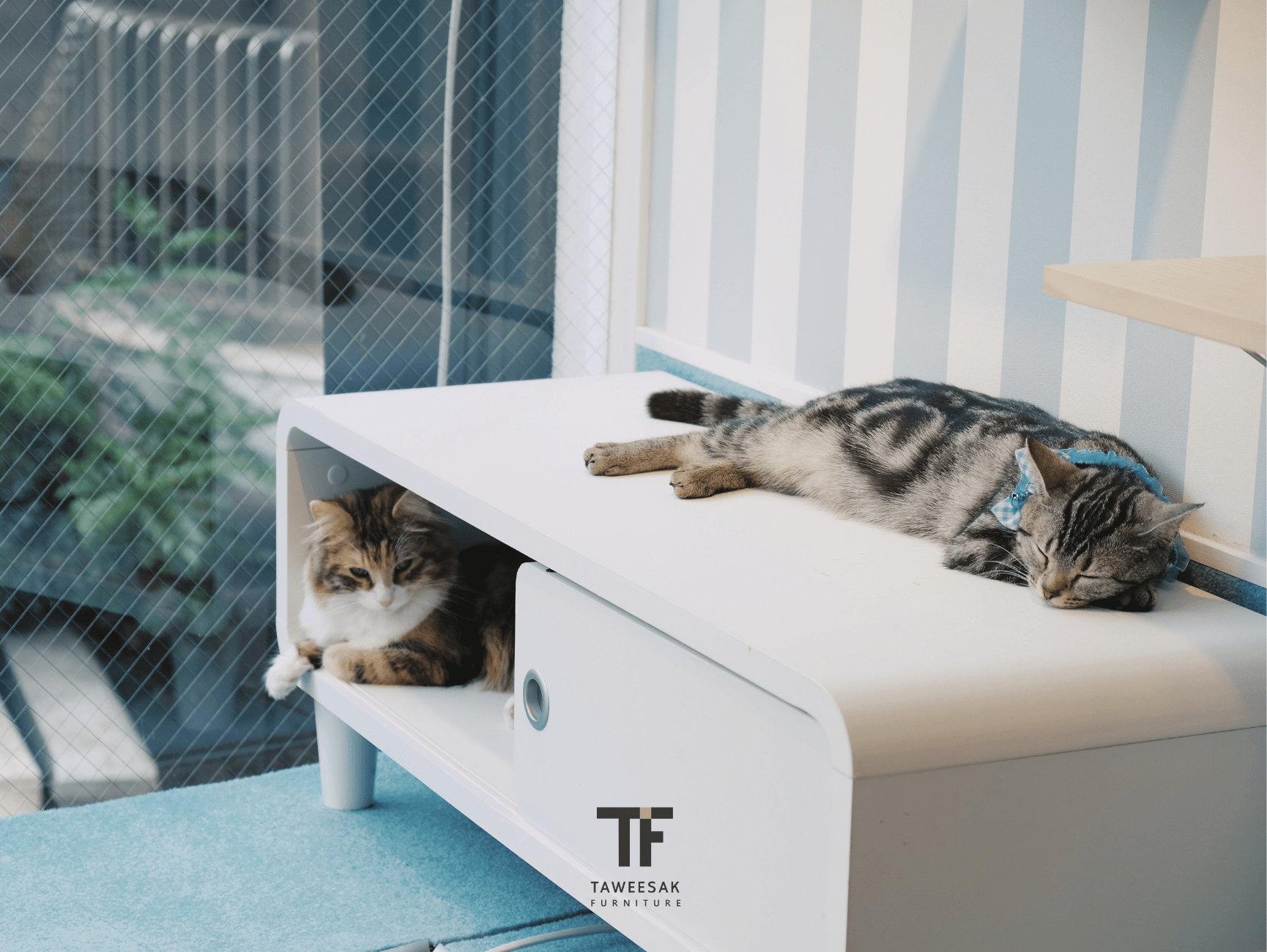 ทั้งหมดที่กล่าวไปเป็นไอเดียแต่งห้องแมวที่ไม่ได้ยุ่งยากเลยใช่ไหมล่ะ? แค่เข้าใจถึงพฤติกรรมของเจ้าเหมียว ก็สามารถสร้างความสุขให้กับเจ้านายขนปุยได้แล้ว ส่วนเฟอร์นิเจอร์ที่เลือกใช้ต้องเลือกเป็นพิเศษสักหน่อย เนื่องจากไม้สังเคราะห์หลาย ๆ ชนิดค่อนข้างมีกลิ่นฉุน รวมถึงการใช้กาวและสารเคลือบที่อาจเป็นอันตรายต่อสัตว์เลี้ยง อีกทั้งยังไม่ทนต่อเล็บคม ๆ ของเจ้าเหมียวเท่าที่ควร