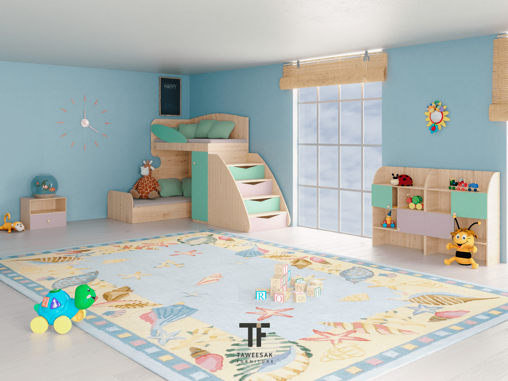 ในการออกแบบห้องนอนเด็ก ไม่จำเป็นว่าเราจะต้องจัดเตรียมพื้นที่สำหรับการนอนเท่านั้น หากเป็นห้องที่ยังมีพื้นที่เหลืออยู่พอสมควร ก็สามารถแบ่งพื้นที่ภายในห้องออกเป็นโซน ๆ เพื่อให้เจ้าตัวเล็กสามารถทำกิจกรรมอื่น ๆ ที่สนใจได้ ไม่ว่าจะเป็น โซนสำหรับการเล่นของเล่น โซนสำหรับการทำการบ้าน หรือโซนสำหรับการแต่งตัว นอกจากจะทำให้ห้องดูเป็นระเบียบมากขึ้น ยังช่วยให้เด็ก ๆ รู้บทบาทหน้าที่ของตนเอง เช่น อยู่ในโซนสำหรับการนอน ก็แสดงว่าถึงเวลาที่ต้องเข้านอนแล้ว หรือ ถ้าอยู่ในโซนของเล่น ก็เป็นเวลาของการเล่นสนุกของเขา เป็นต้น