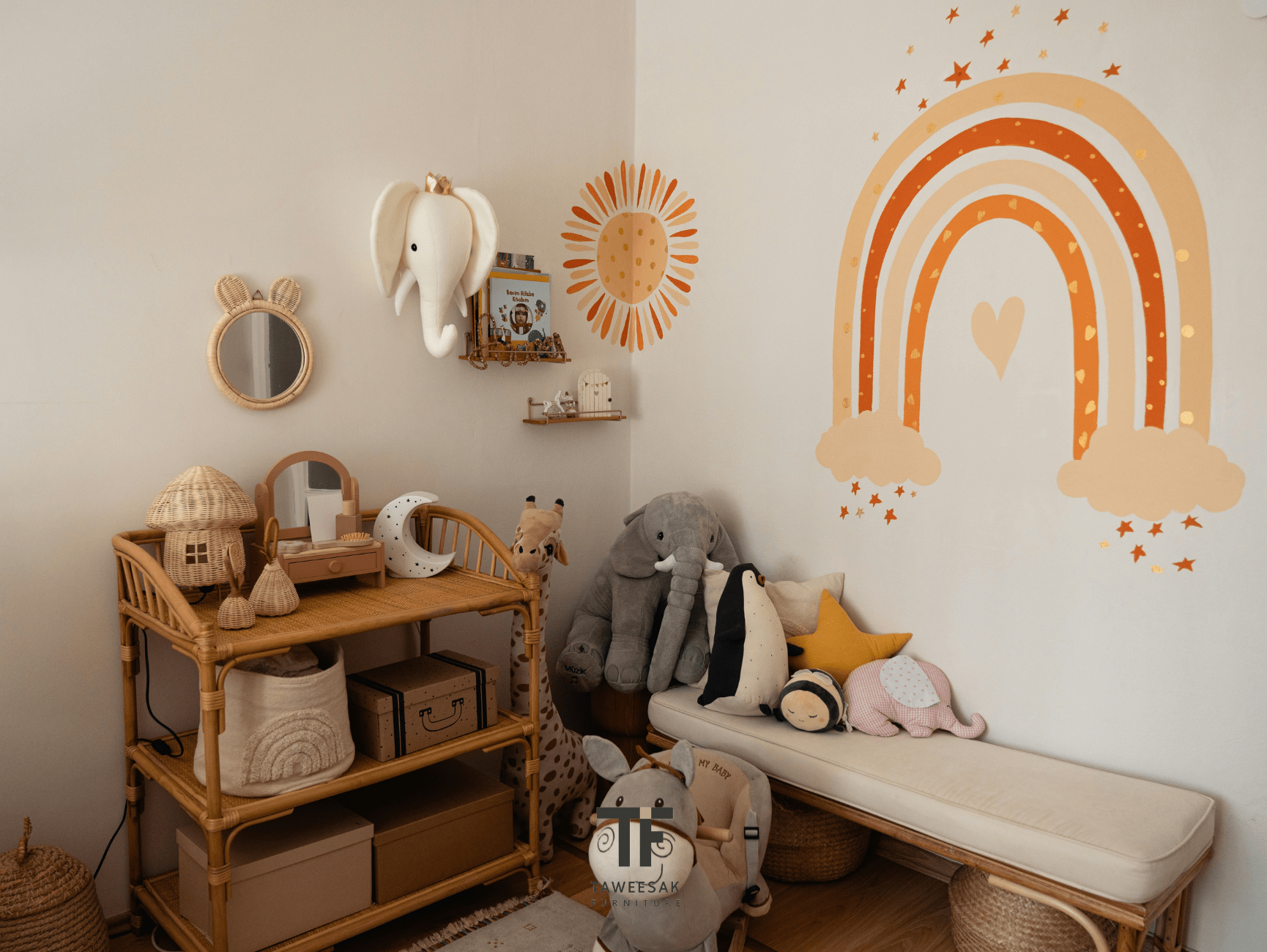 ห้องนอนเด็กเปรียบเสมือนพื้นที่ส่วนบุคคลที่พ่อแม่มอบให้กับเด็ก ๆ การตกแต่งห้องโดยมีธีมที่สอดคล้องกับความสนใจของเจ้าตัวเล็ก ก็จะช่วยให้การอาศัยภายในห้องเปรียบเสมือนกับพื้นที่ Safe Zone อยู่แล้วมีความสุข อยู่แล้วรู้สึกสบายใจ แถมยังช่วยในเรื่องของพัฒนาการอีกด้วย ยกตัวอย่างเช่น หากเจ้าตัวเล็กชื่นชอบเรื่องราวเกี่ยวกับอวกาศ การตกแต่งห้องโดยให้ภายในห้องมีดวงดาวต่าง ๆ มีจรวดสำหรับท่องไปในอวกาศ ก็อาจเป็นการส่งเสริมความชอบ จนทำให้เขาอยากเรียนรู้เรื่องของวิทยาศาสตร์ในอนาคตก็เป็นได้