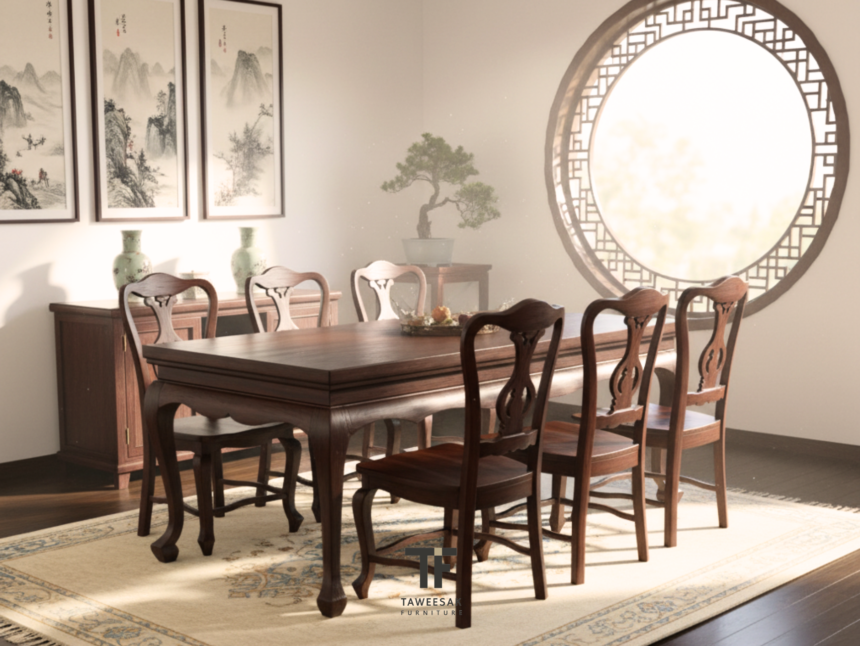 ชุดโต๊ะอาหารไม้สักสไตล์จีน DS114 (อ่านรายละเอียดสินค้า)