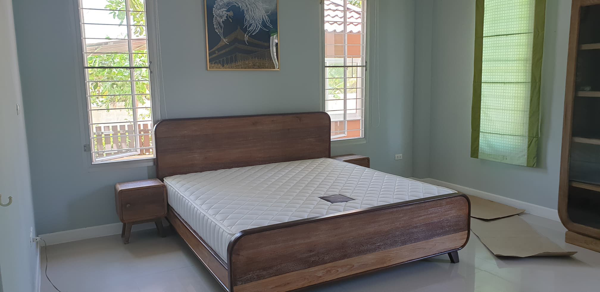 - ใต้เตียงมีคาน ขากลางรองรับน้ำหนักเพิ่มอีก 2 ขา(กรณีเลือกเป็นฐานเตียงไม้สักระแนง) สามารถรับน้ำหนักการใช้งานได้อย่างดี