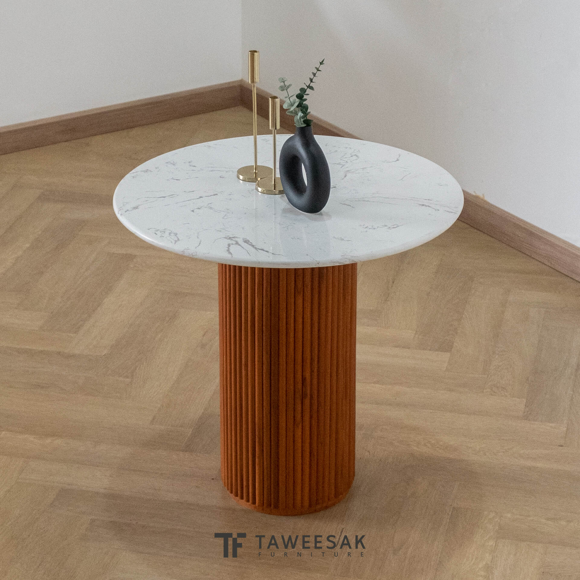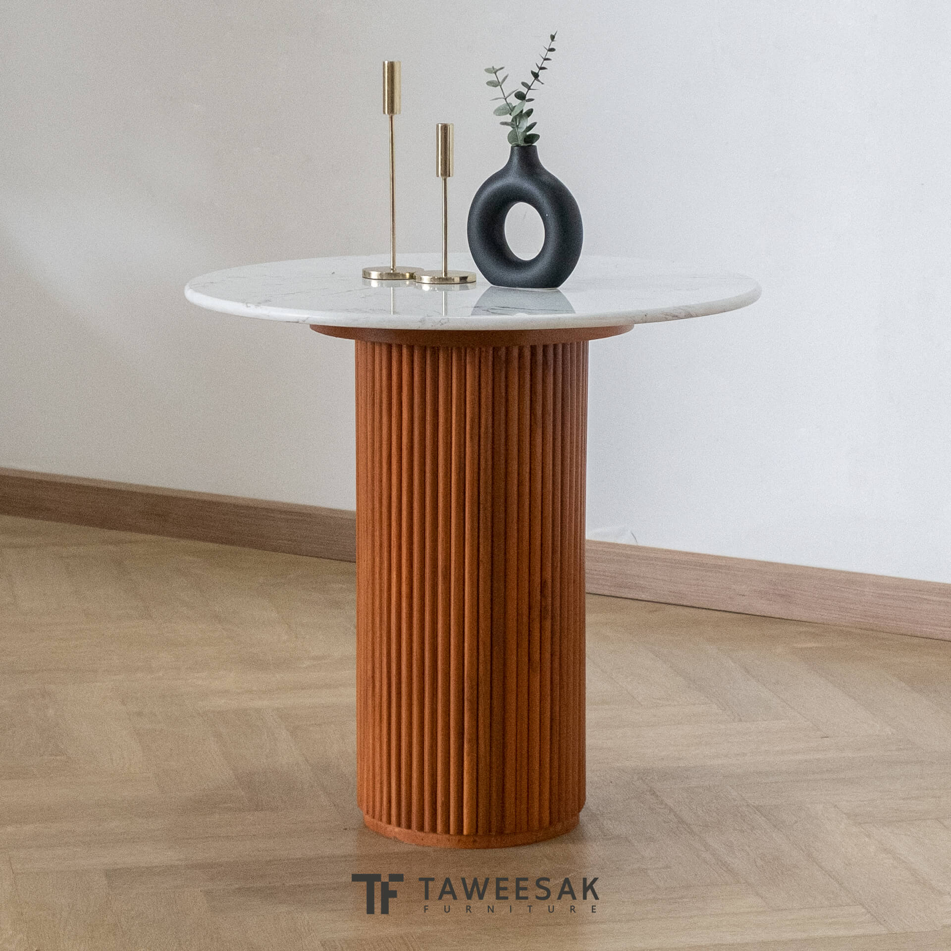 วัสดุ: ขาโต๊ะไม้สัก, ท็อปโต๊ะหินอ่อนสังเคราะห์