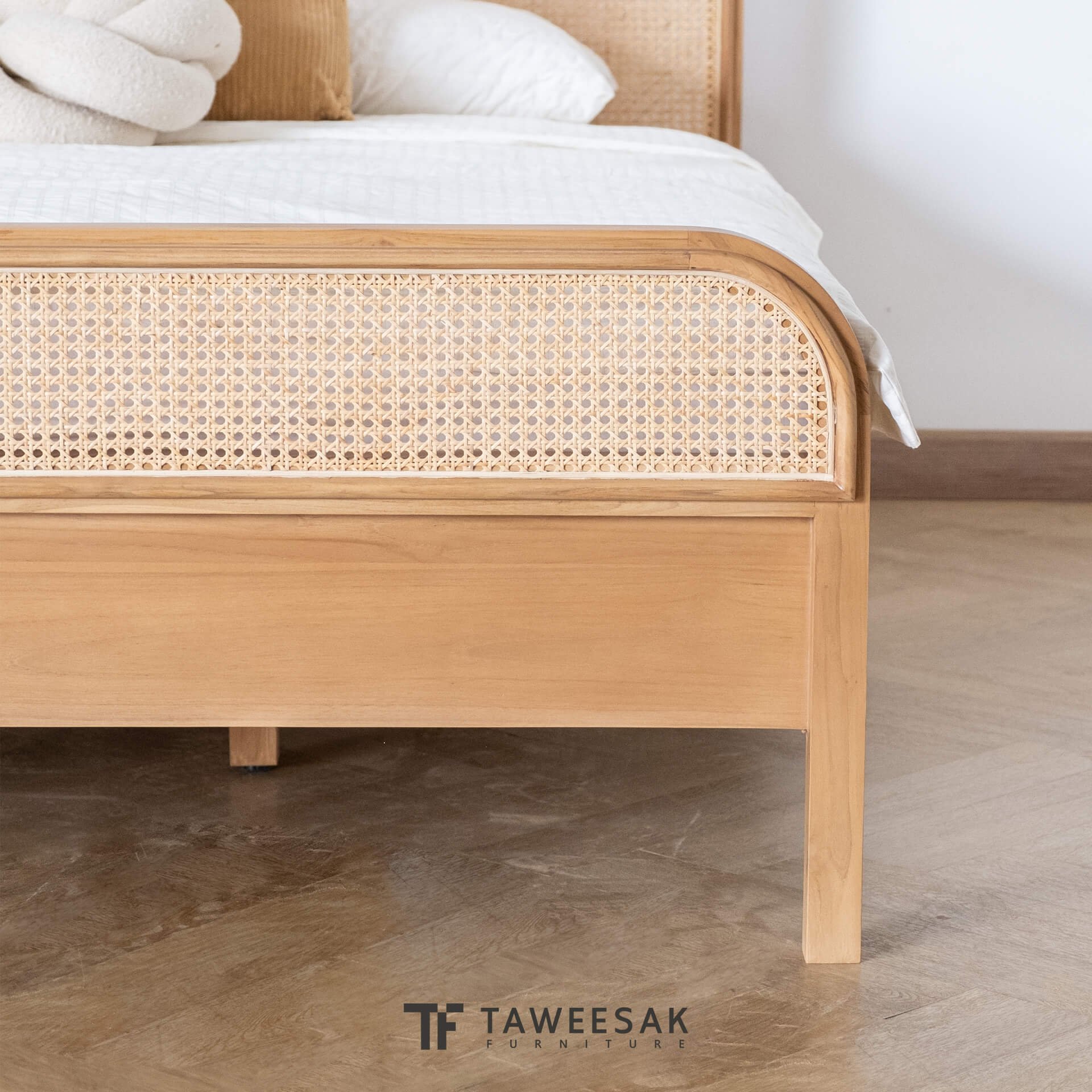 - ฐานเตียงเป็นไม้สักระแนงหรือไม้สักต่อกันเป็นแผ่น ขัดเคลือบพ่นผิวหน้าไม้อย่างดี