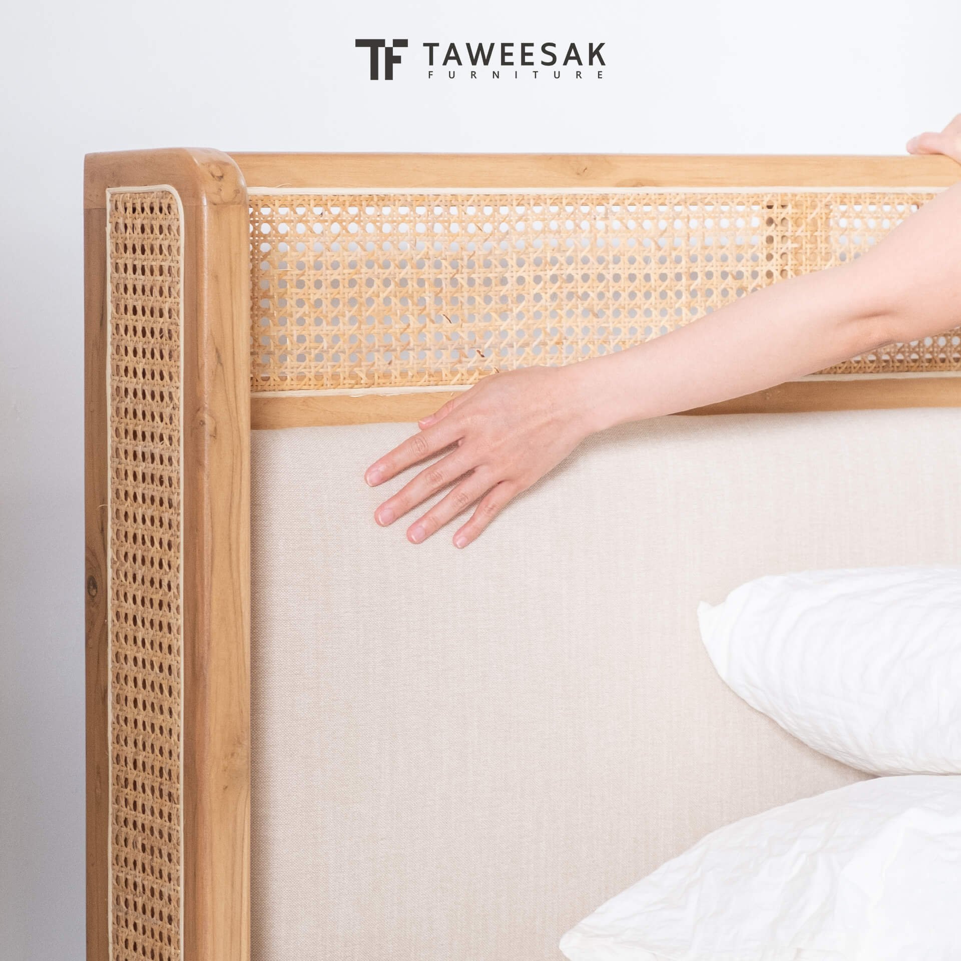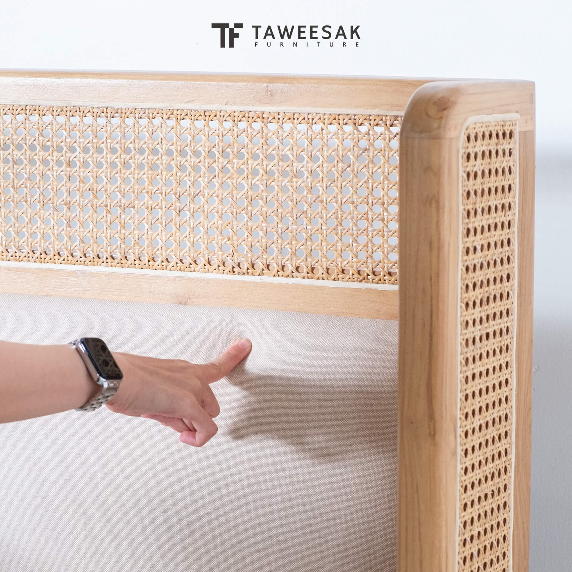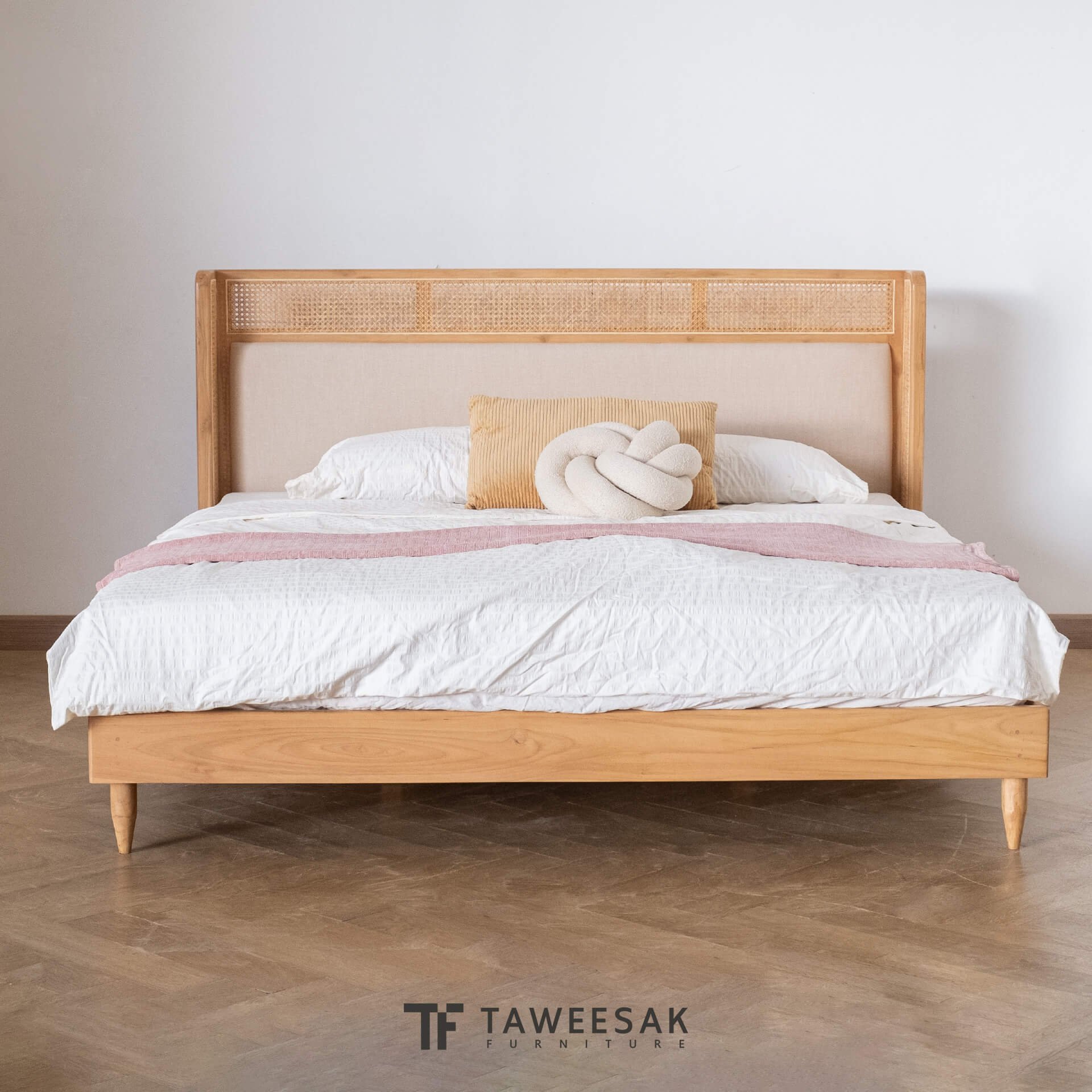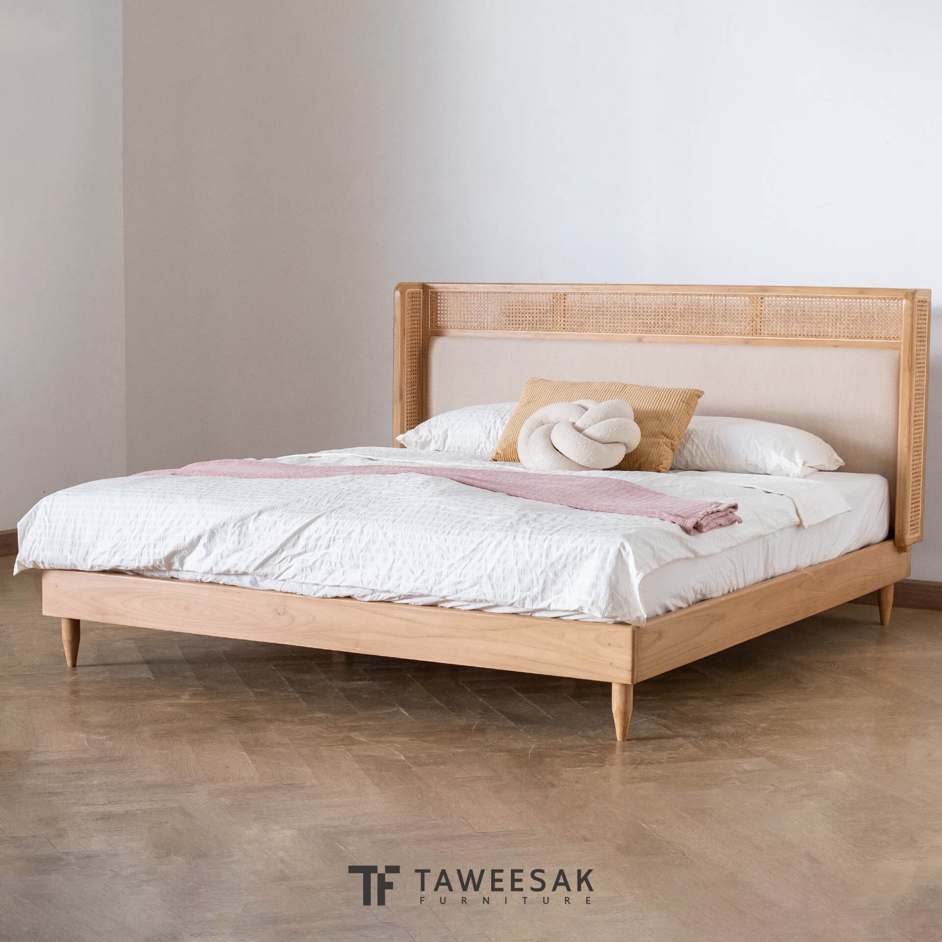ฐานเตียงเป็นไม้สักระแนงหรือไม้สักต่อกันเป็นแผ่น ขัดเคลือบพ่นผิวหน้าไม้อย่างดี