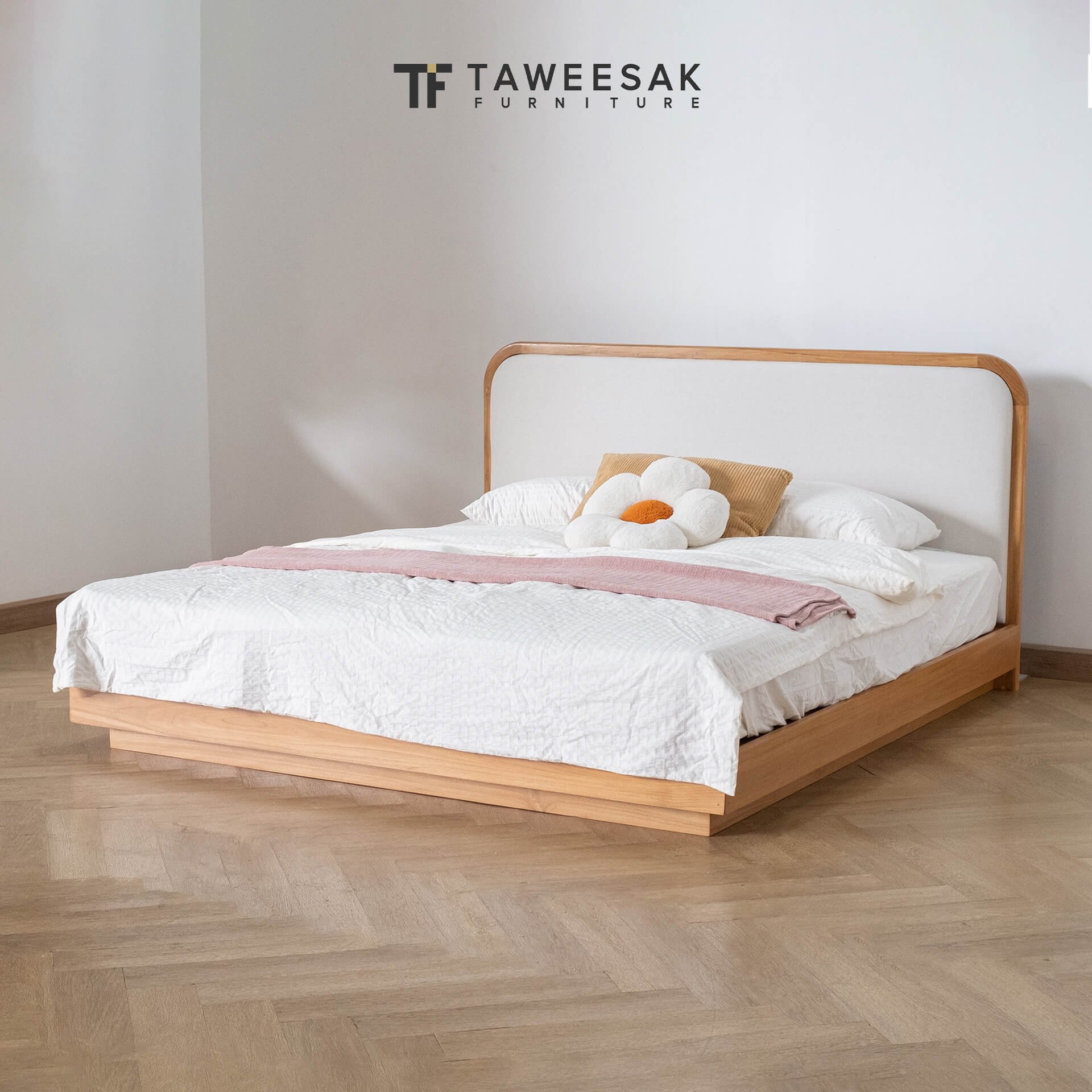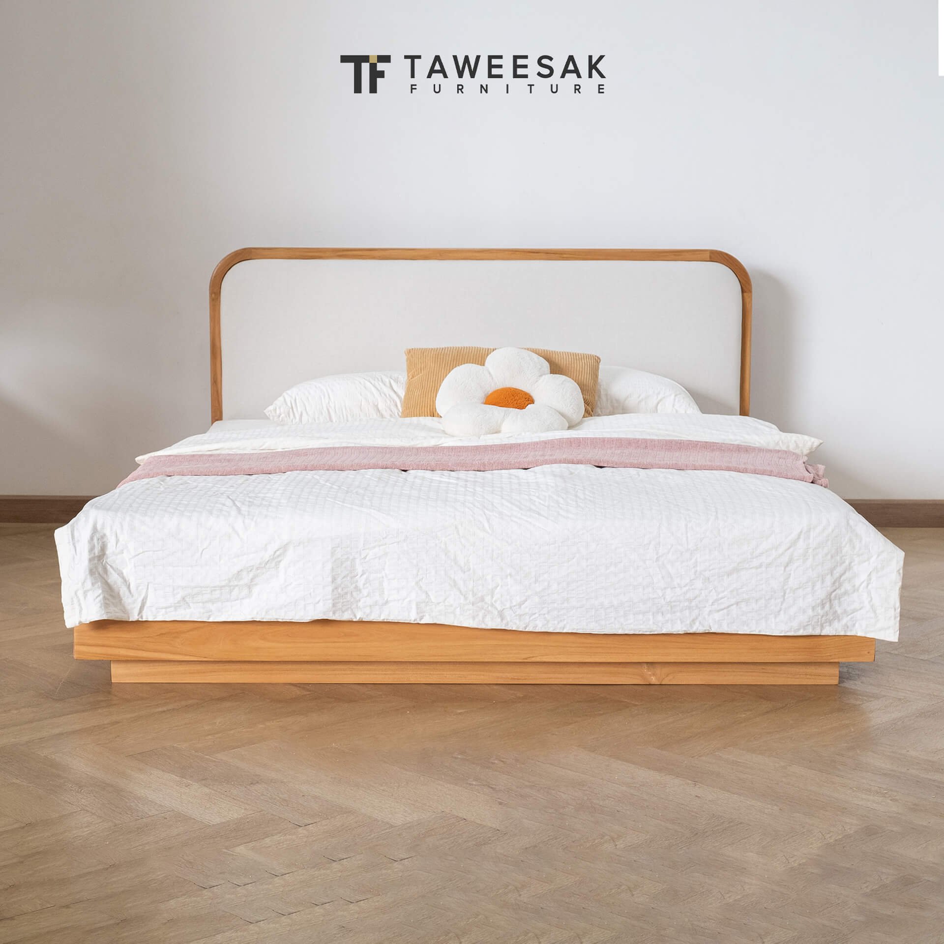 ฐานเตียงเป็นไม้สักระแนงหรือไม้สักต่อกันเป็นแผ่น ขัดเคลือบพ่นผิวหน้าไม้อย่างดี