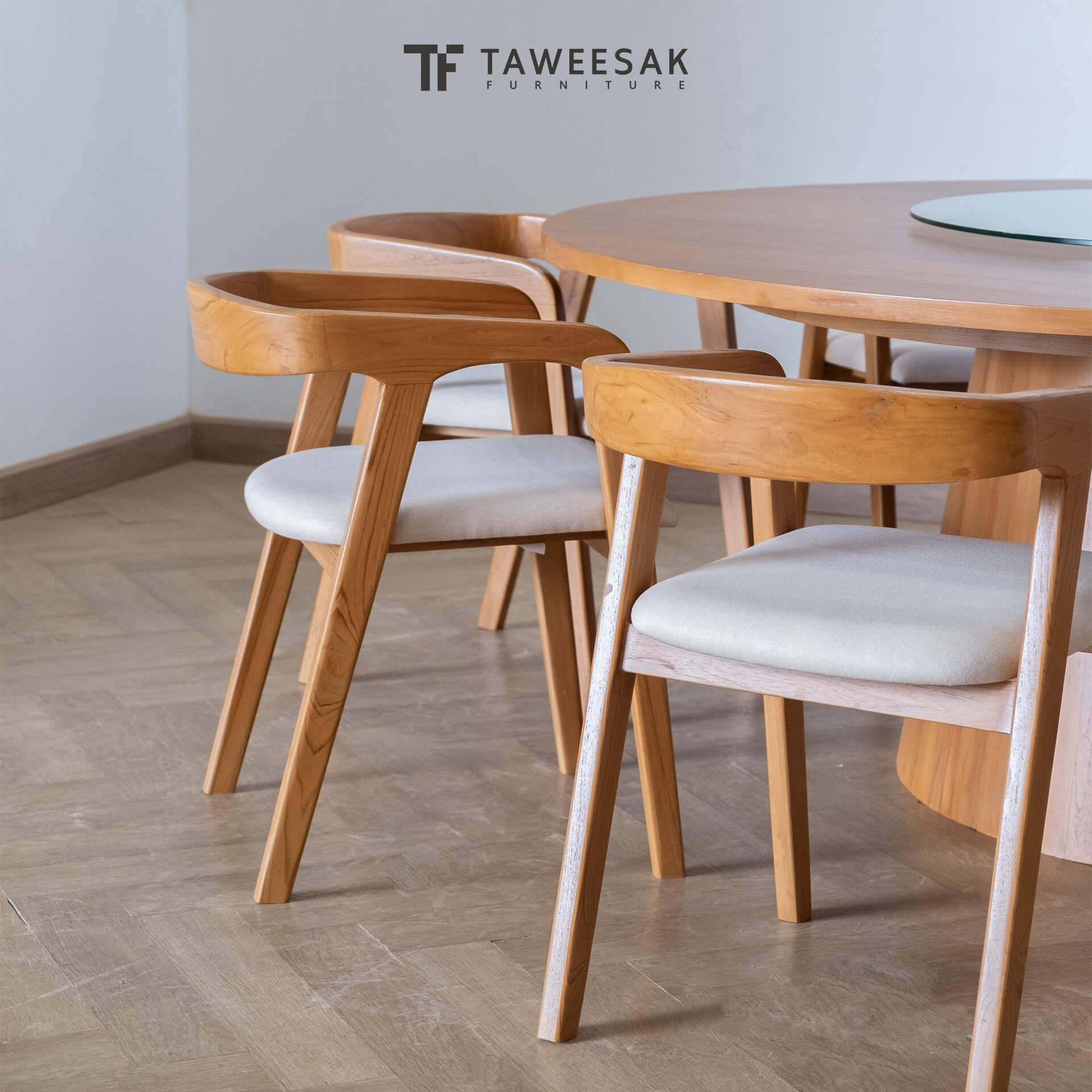 หมวดหมู่ : เฟอร์นิเจอร์ไม้สัก ,  ชุดโต๊ะอาหาร (Dining table set) ,  โต๊ะอาหารทรงกลม ,