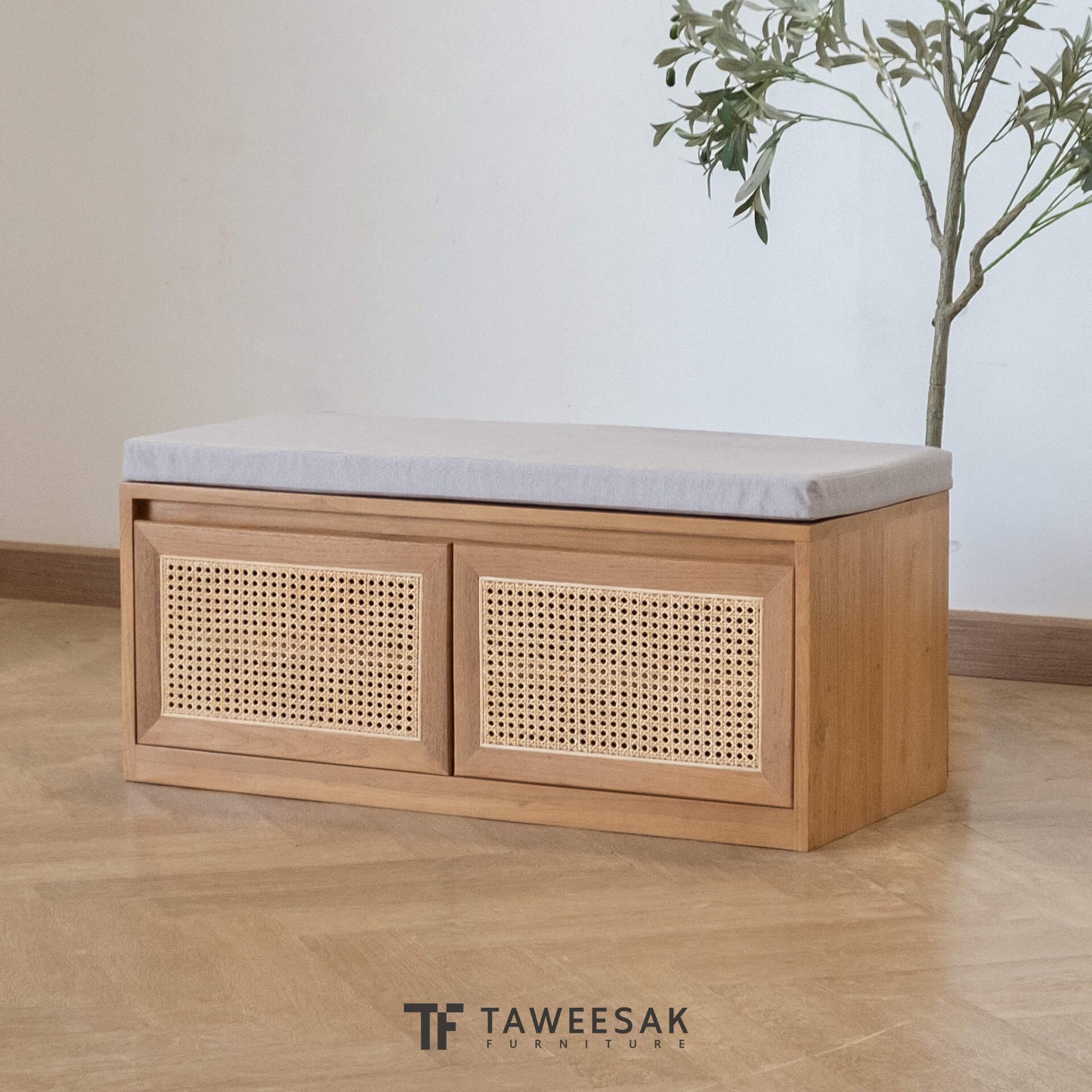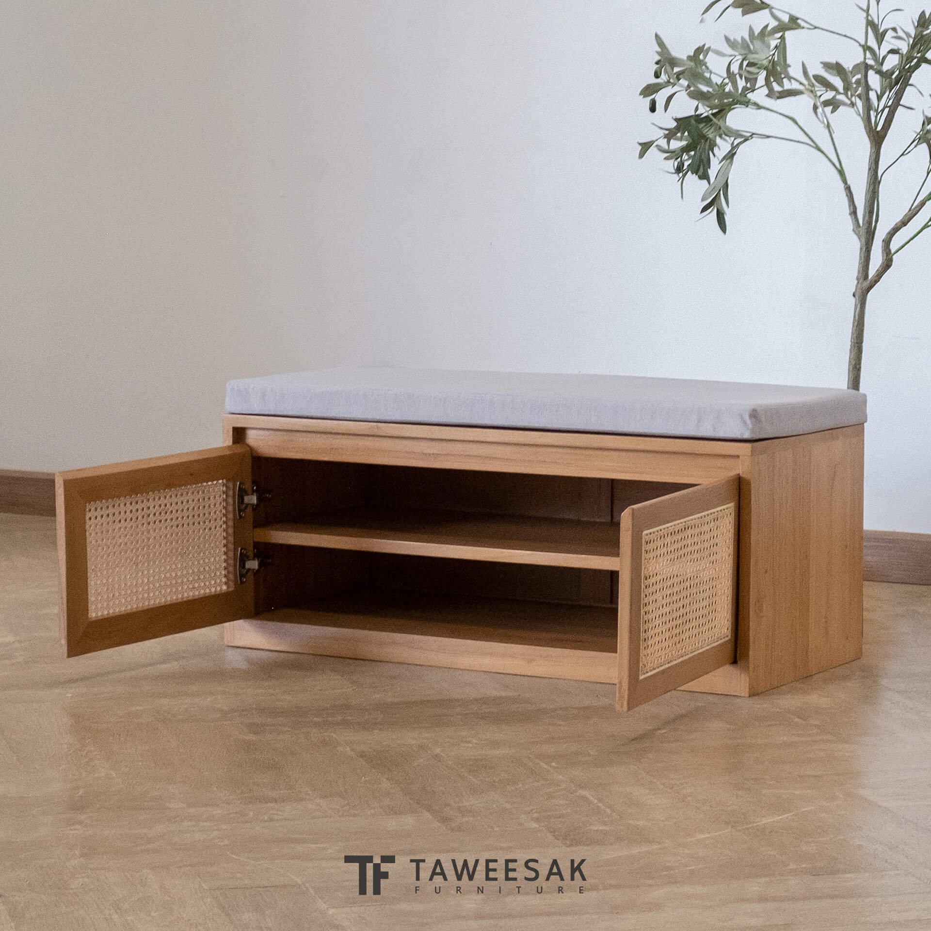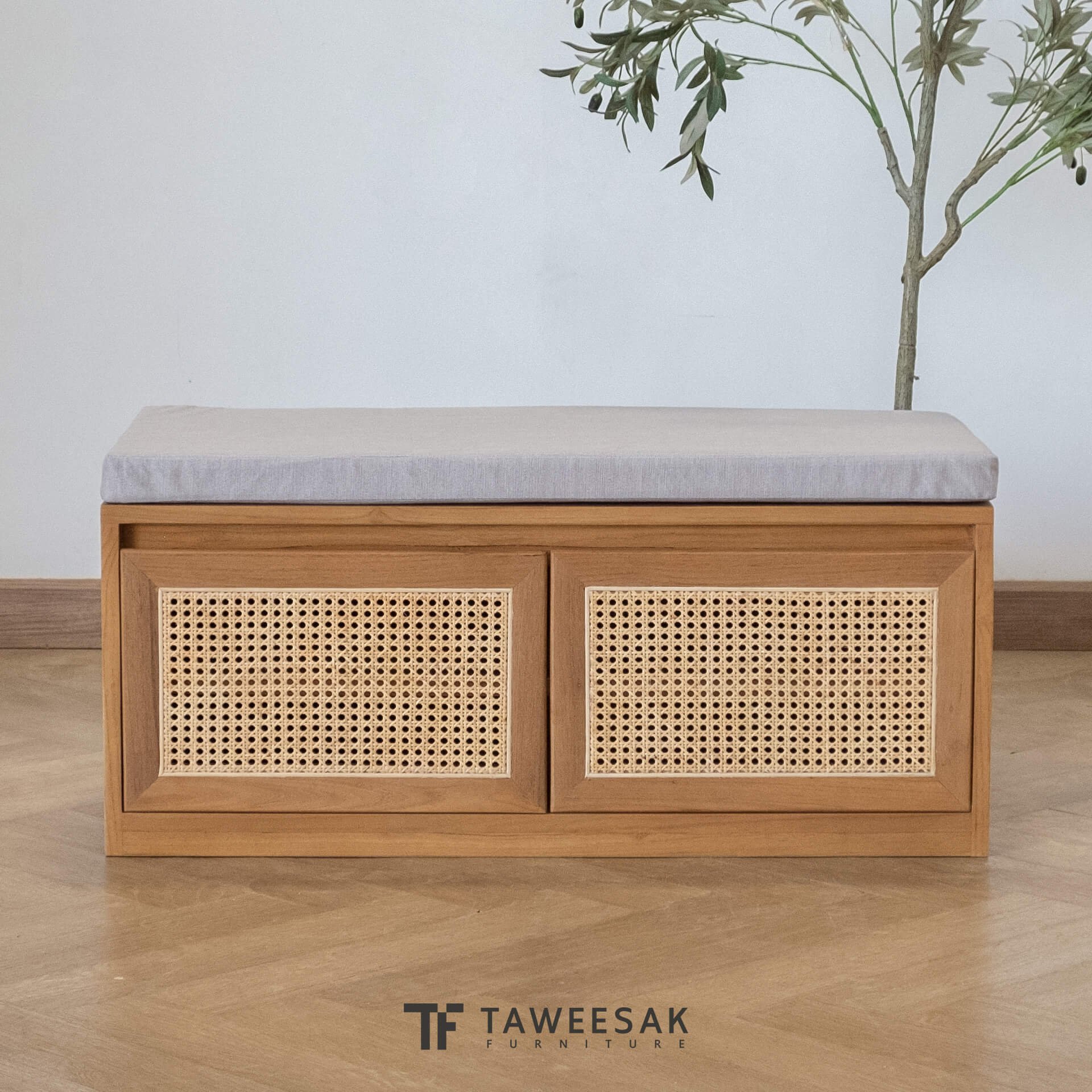 ตู้รองเท้าไม้สักกรุหวาย SS071