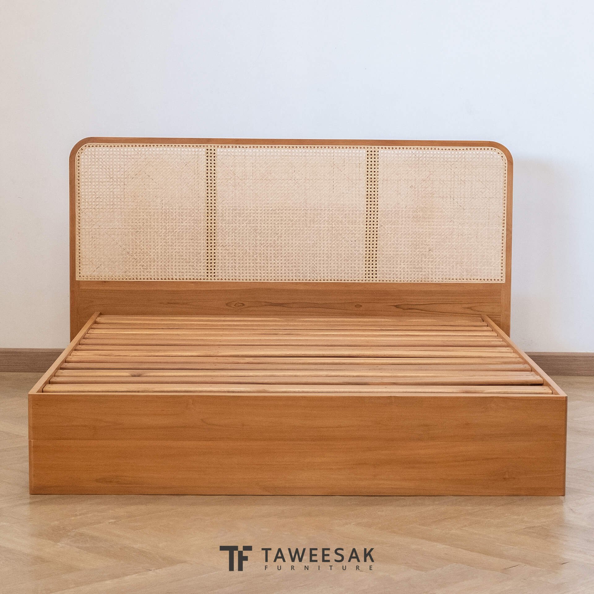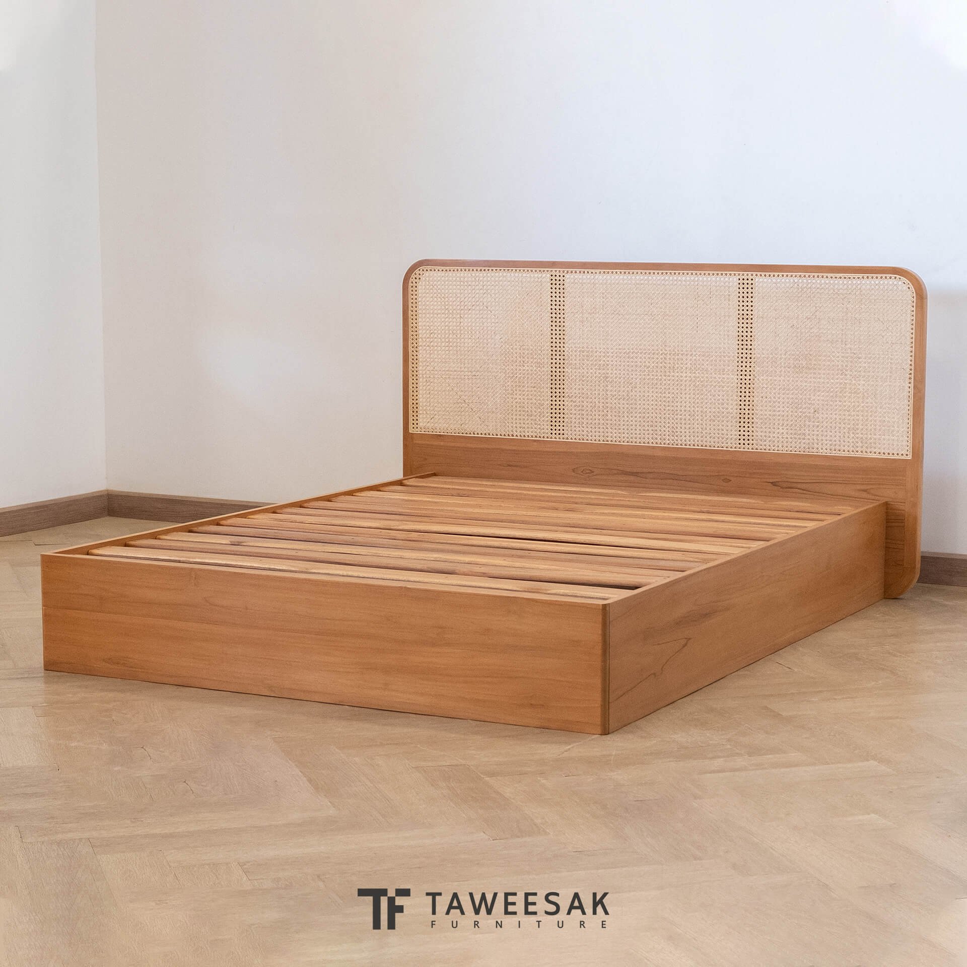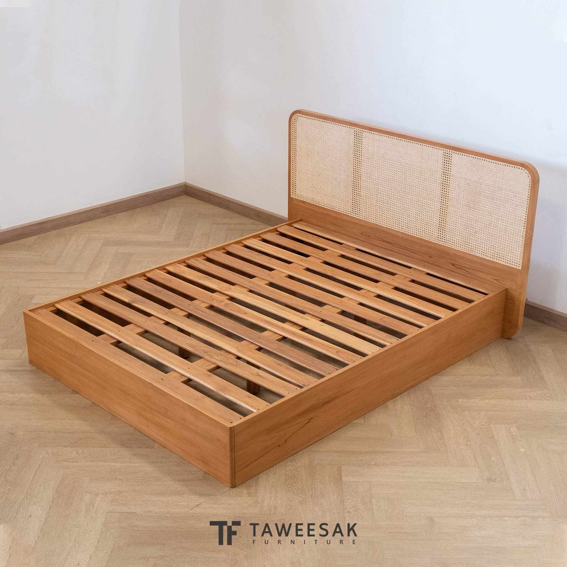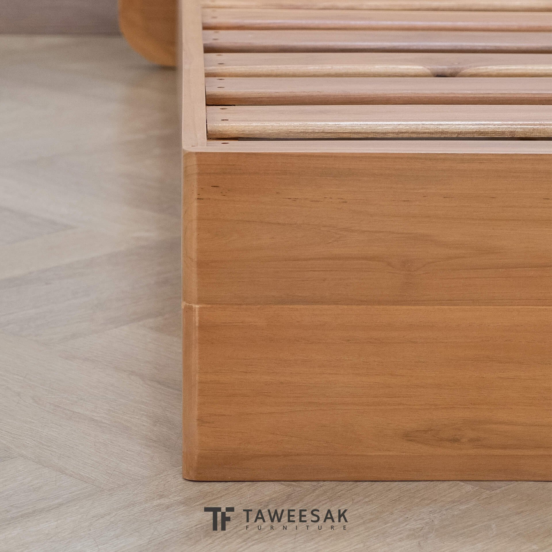 - ฐานเตียงเป็นไม้สักต่อกันเป็นแผ่น ขัดเคลือบพ่นผิวหน้าไม้อย่างดี